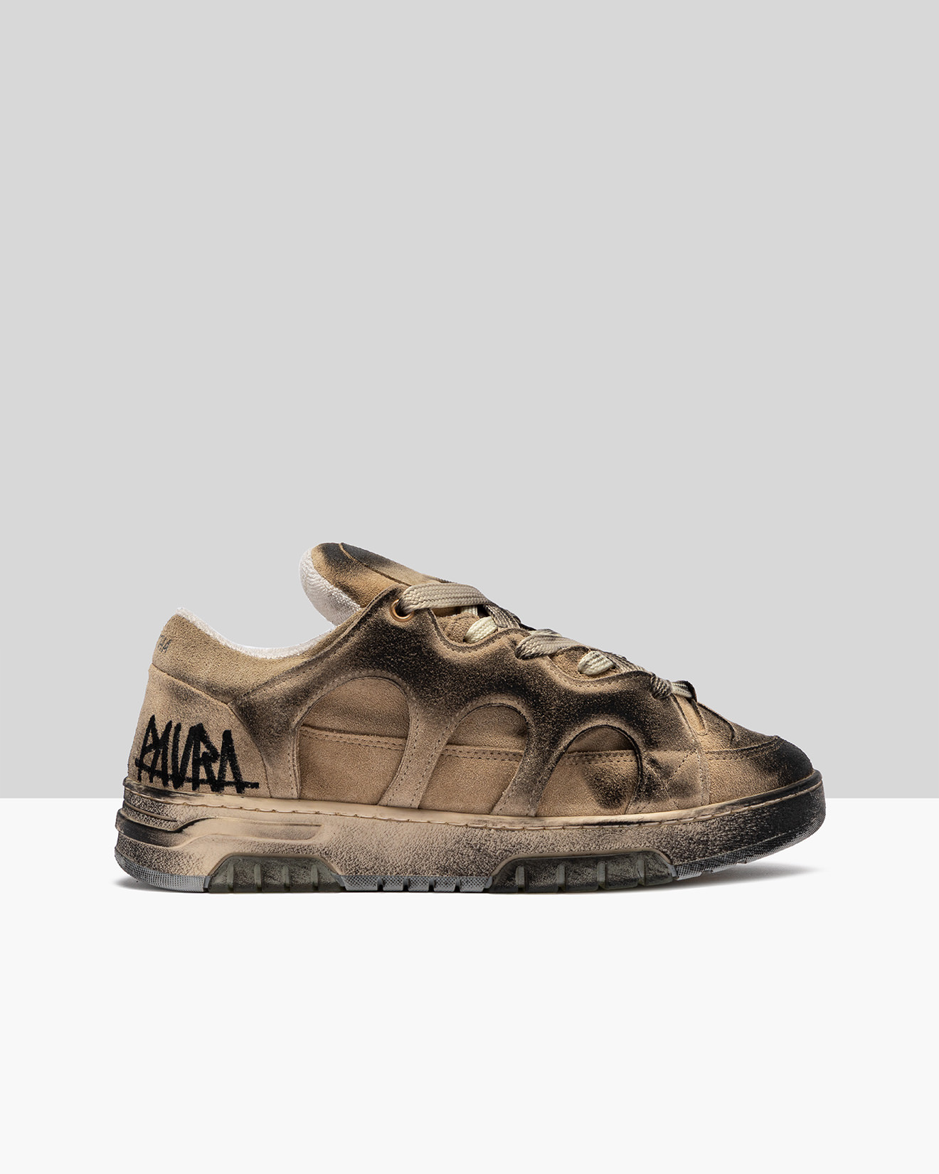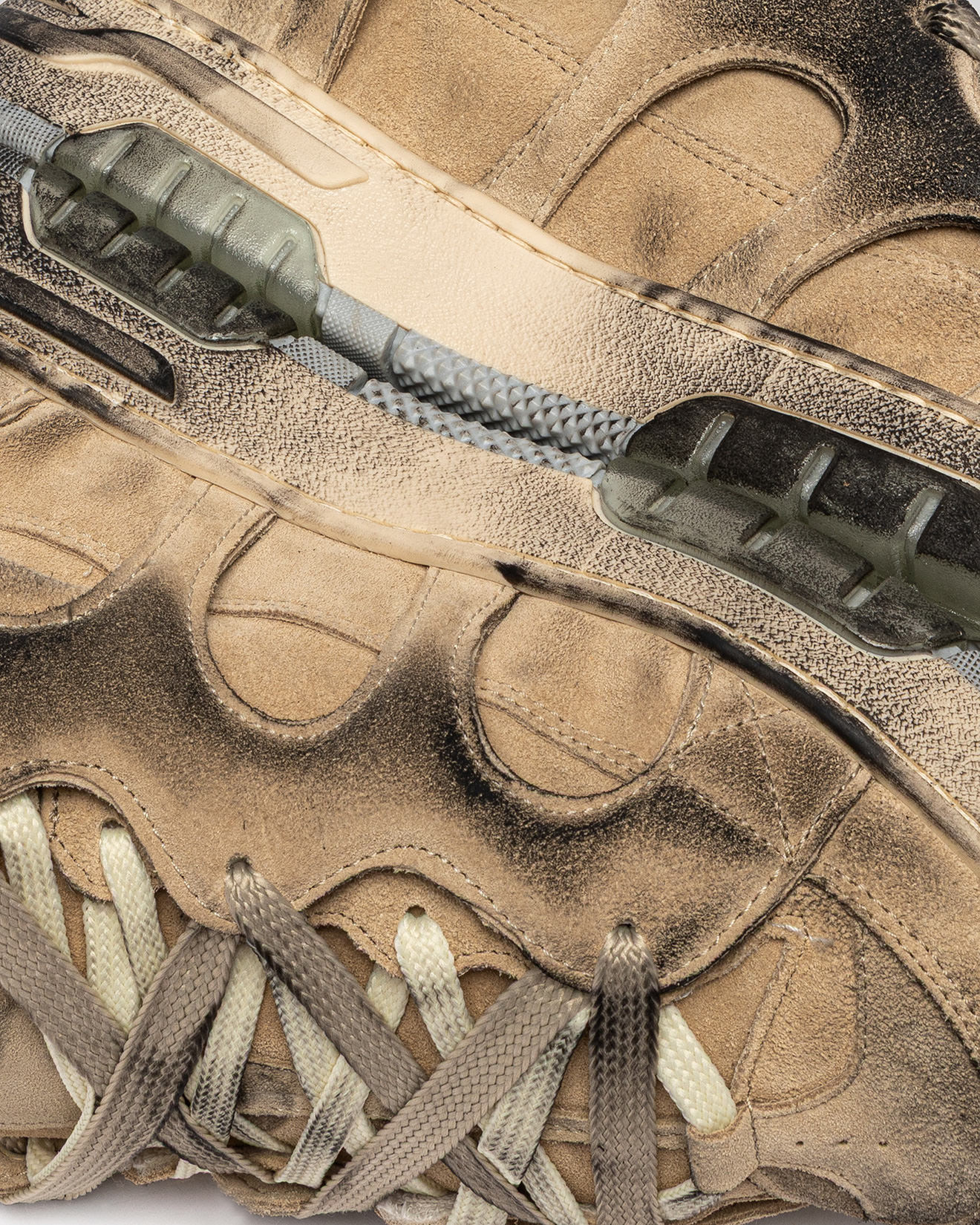 • Seamed sole in used effect TPU.