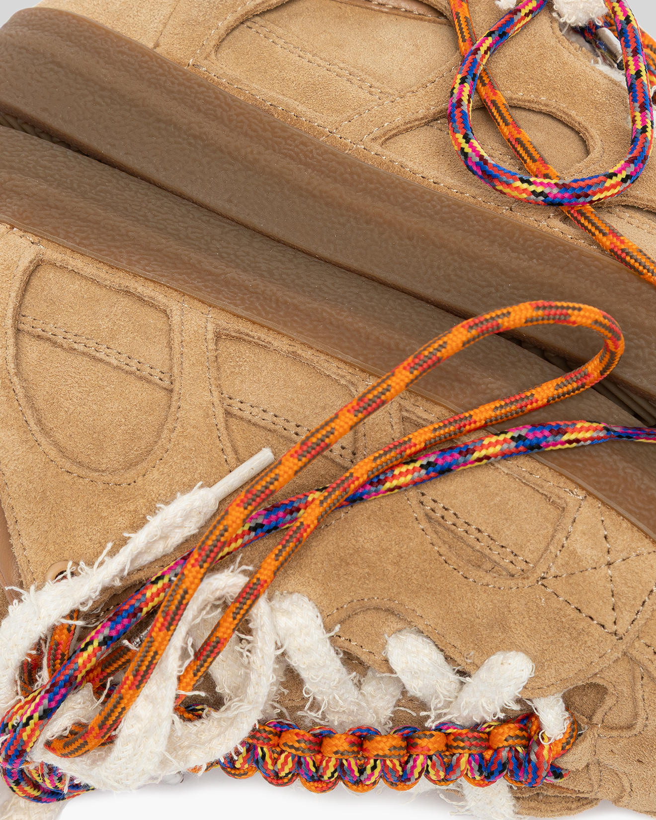 • Handcrafted overlays in perforated suede.