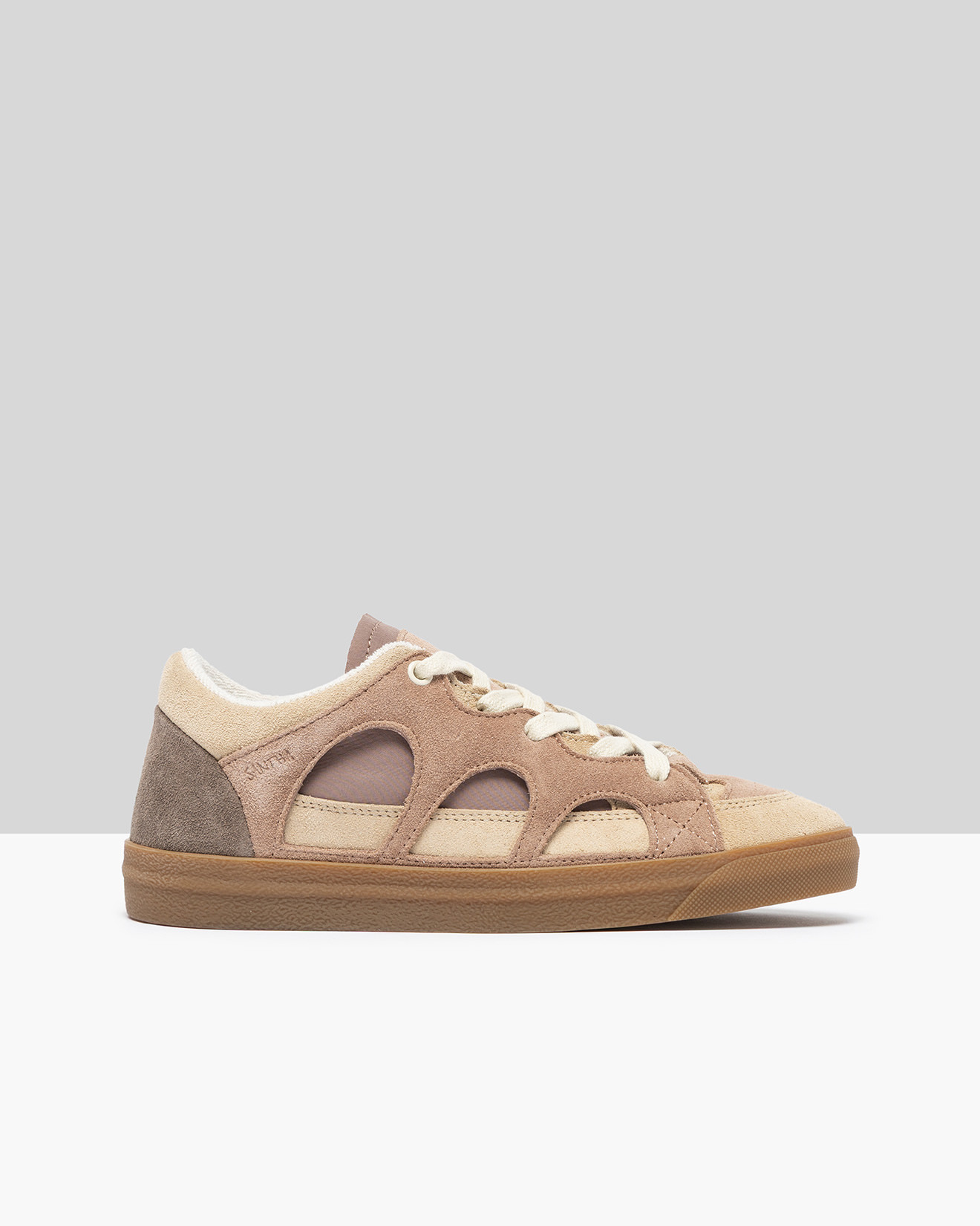 • Sovrapposizioni in suede perforato realizzati artigianalmente.